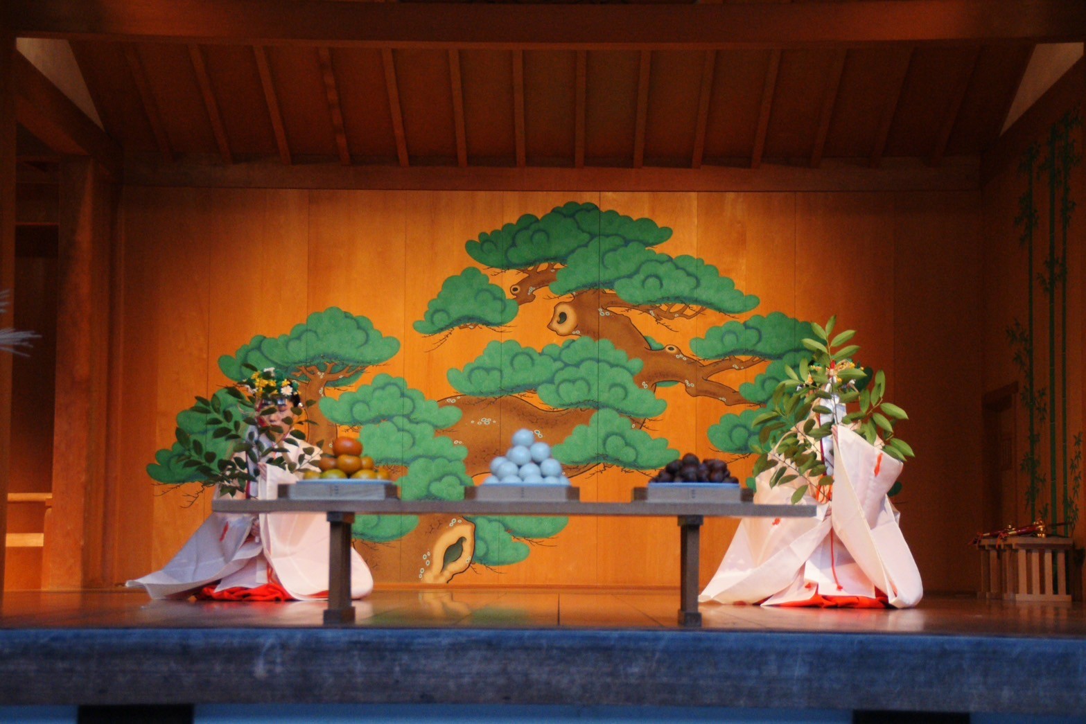 観月祭は月読命のお社の前で神事を行い、能楽殿にて巫女の舞、人長の舞を奉奏致しました。当日は天候にも恵まれ能楽殿の真上に綺麗なお月様が昇っており、幻想的な舞を奉奏する事が出来ました。