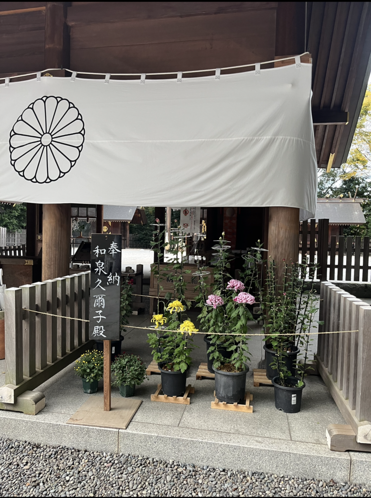 拝殿右側に奉納された菊がありますので参拝する際是非ご覧ください