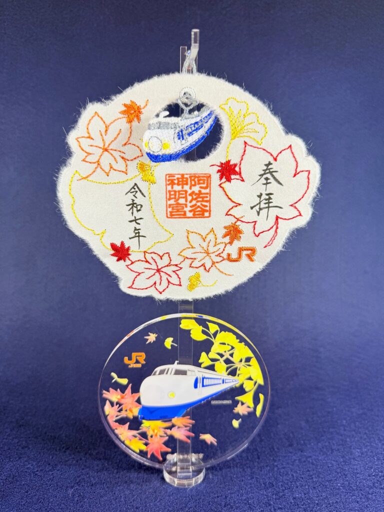 阿佐ヶ谷神明宮×JR東海 コラボ御朱印のお知らせ『紅葉』 当宮と東海旅客鉄道株式会社(以下、「JR東海」)は共同で【秋】限定刺繍入りチャーム型御朱印『紅葉』 専用スタンド付を奉製することになりましたことをお知らせ致します。 10月1日(水)午前10時より JR東海EXサービスウェブサイトで予約受付開始となります。 頒布開始(神明宮で授与)も同日10月1日(水)から。 ※詳しい詳細は予約開始日、10月1日午前10時からJR東海EXサービスウェブサイトにてご確認ください。