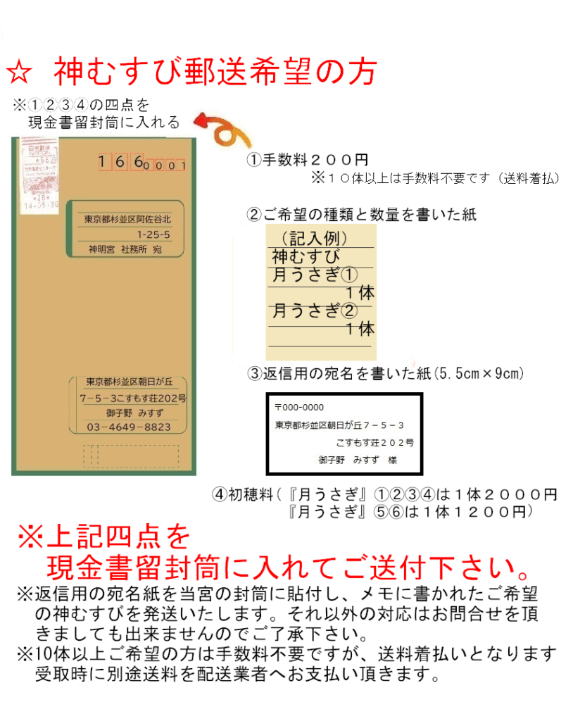 (4)申し込み分の初穂料 「月うさぎ」①②③④は1体2000円、⑤⑥は1体1200円