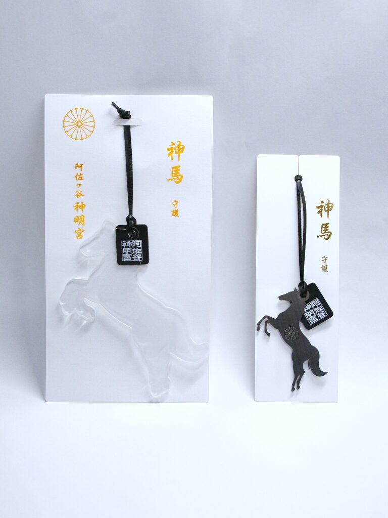 「神馬 守護」頒布再開のお知らせ 頒布を一時中止していた「神馬 守護」について、両タイプともに頒布を再開いたしました。 ご希望の方は授与所にてお受けください。(透明タイプ2000円、ステンレスタイプ2500円)