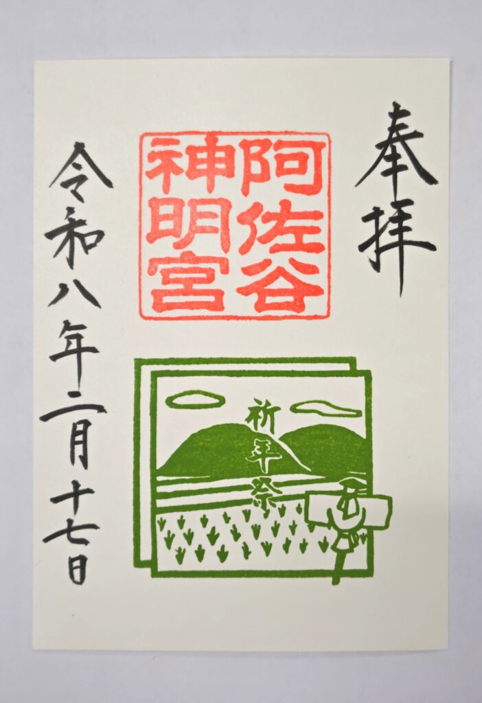 令和8年2月17日、祈年祭朱印頒布のお知らせ 令和8年2月17日、祈年祭(としごいのまつり)を斎行します。 祈年祭とは秋の新嘗祭(にいなめさい)と対をなす祭典であり、今年の五穀豊穣を祈る、農耕民族である我々日本にとって非常に重要な祭祀であり、宮中はもとより、全国の神社で斎行されております。 当宮では当日御朱印をお受けの方に五穀豊穣を祈念した絵をあしらった御朱印をお頒ち致します。