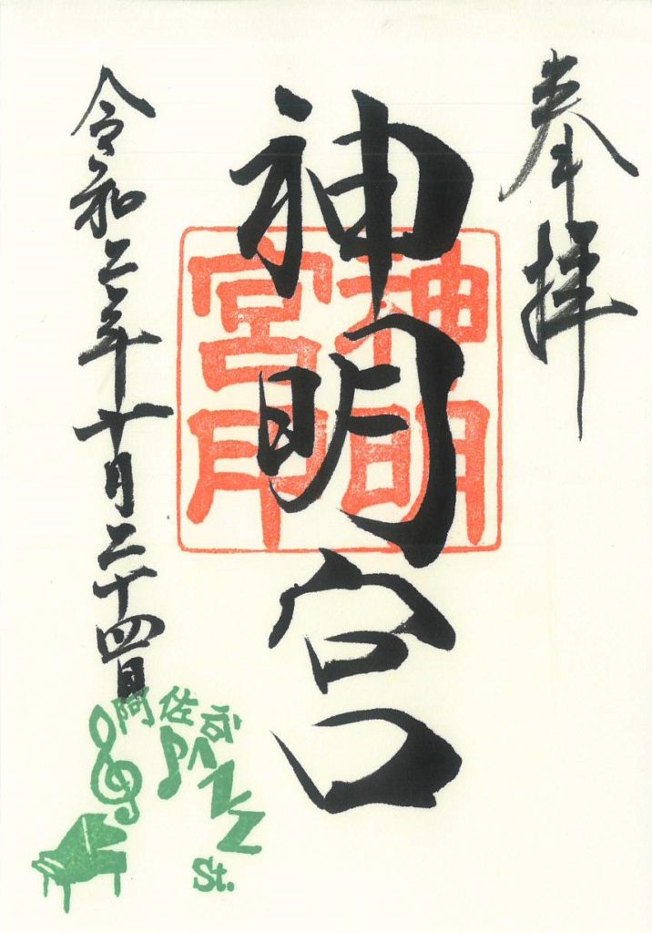 また、ジャズストリート開催を記念して当宮では、23日、24日それぞれ別の絵柄の特別御朱印を授与いたします。